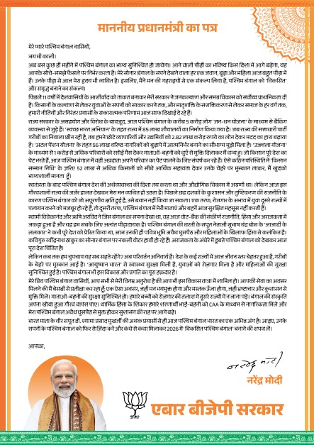 ପଶ୍ଚିମବଙ୍ଗ ଜନସାଧାରଣଙ୍କୁ ସମ୍ବୋଧିତ କରି ଏକ ଚିଠି ଲେଖିଛନ୍ତି ମୋଦୀ