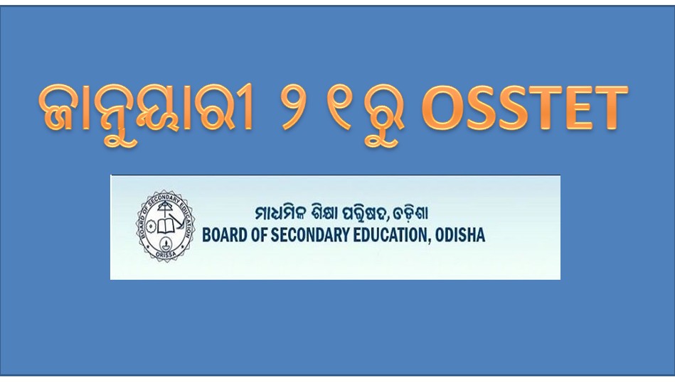 ଆସନ୍ତା ଜାନୁୟାରୀ ୨୧ ତାରିଖରେ ଅନୁଷ୍ଠିତ ହେବ ଓଡ଼ିଶା ମଧ୍ୟମିକ ବିଦ୍ୟାଳୟ ଶିକ୍ଷକ ଯୋଗ୍ୟତା ପରୀକ୍ଷା(ଓଏସଏସଟିଇଟି)