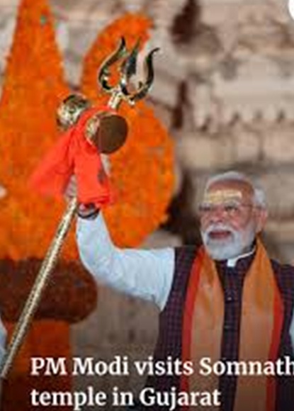 ସୋମନାଥ: ପ୍ରଧାନମନ୍ତ୍ରୀ ନରେନ୍ଦ୍ର ମୋଦୀ ତିନି ଦିନିଆ ଗୁଜରାଟ ଗସ୍ତରେ ଅଛନ୍ତି। ଜାନୁଆରି ୧୦ ତାରିଖ ରାତିରେ, ପ୍ରଧାନମନ୍ତ୍ରୀ ସୋମନାଥ ମନ୍ଦିରରେ ପହଞ୍ଚି ଓଁକାର ମନ୍ତ୍ର ଜପ କରିବାରେ ଅଂଶଗ୍ରହଣ କରିଥିଲେ। ଏହି ସମୟରେ, ସେ ମନ୍ଦିର ପରିସରରେ ଆୟୋଜିତ ଏକ ଭବ୍ୟ ଡ୍ରୋନ୍ ଶୋ ମଧ୍ୟ ଦେଖିଥିଲେ। ଜାନୁଆରି ୧୧ ତାରିଖ ରବିବାର ପ୍ରଧାନମନ୍ତ୍ରୀ ସୋମନାଥ ମନ୍ଦିରକୁ ସୁରକ୍ଷା ଦେବା ପାଇଁ ନିଜ ଜୀବନ ବଳିଦାନ ଦେଇଥିବା ସହିଦମାନଙ୍କୁ ଶ୍ରଦ୍ଧାଞ୍ଜଳି ଜଣାଇବା ପାଇଁ ଆୟୋଜିତ ଶୌର୍ଯ୍ୟ ଯାତ୍ରାରେ ଅଂଶଗ୍ରହଣ କରିଛନ୍ତି। ଏହା ସହ ପ୍ରଧାନମନ୍ତ୍ରୀ ସୋମନାଥ ମନ୍ଦିରରେ ପ୍ରାର୍ଥନା କରିବାକୁ ପହଞ୍ଚିଛନ୍ତି।