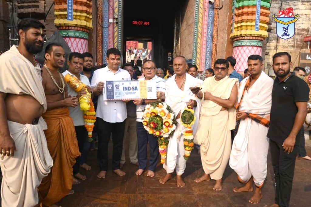 ପୁରୀ: ଆଗାମୀ ଭାରତ ଓ ଦକ୍ଷିଣ ଆଫ୍ରିକା ମଧ୍ୟରେ ଅନୁଷ୍ଠିତ ହେବାକୁ ଥିବା ପ୍ରଥମ T20 ଆନ୍ତର୍ଜାତିକ ମ୍ୟାଚ୍ ପାଇଁ ରବିବାର ଓଡ଼ିଶା କ୍ରିକେଟ୍ ଆସୋସିଏସନ୍ (OCA) ପକ୍ଷରୁ ପ୍ରଥମ ଟିକେଟ୍ ମହାପ୍ରଭୁ ଶ୍ରୀ ଜଗନ୍ନାଥଙ୍କୁ ସମର୍ପଣ କରାଯାଇଛି। OCA ସମ୍ପାଦକ ସଞ୍ଜୟ ବେହେରା ରବିବାର ପୁରୀ ଶ୍ରୀମନ୍ଦିରରେ ମହାପ୍ରଭୁଙ୍କ ନିକଟରେ ଭକ୍ତି ଓ ସମ୍ମାନର ସହ ମ୍ୟାଚର ପ୍ରଥମ ଟିକେଟ୍ ଭେଟି ଦେଇଛନ୍ତି।